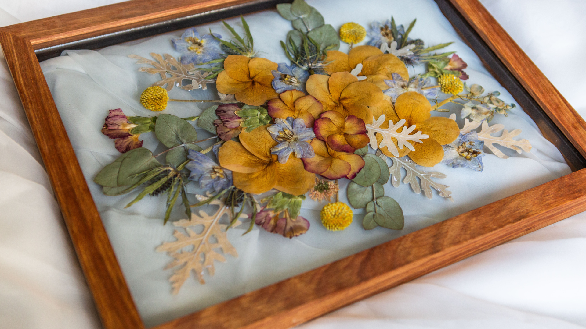 Secure your place in our studio by purchasing a Flower Preservation Package, choosing your preferred frame size, wood finish, and layout design.